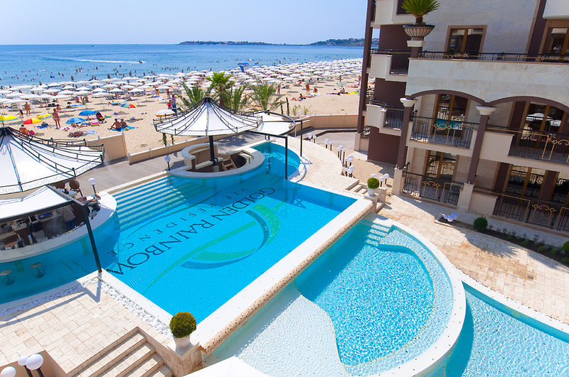 miesto:Hotel Golden Rainbow sa nachádza len pár krokov od piesočnatej pláže. Lehátka a slnečníky sú na pláži k dispozícii za poplatok. Turistické centrum je vzdialené len pár metrov. Mesto Nesebar je vzdialené približne 5 km (Burgas približne 35 km). Obchody sa nachádzajú približne 100 m od hotela a supermarket je vzdialený asi 10 m. Najbližšie bary a reštaurácie sú tiež vzdialené asi 10 m. Najbližší nočný klub je vzdialený asi 300 m. Autobusová zastávka (približne 30 m) poskytuje ľahký prístup. Ďalšie miesta sú dostupné cez železničnú stanicu, ktorá je vzdialená približne 35 km. Letisko (BOJ) je vzdialené približne 27 km. Ďalšie letisko (VAR) je vzdialené asi 100 km.