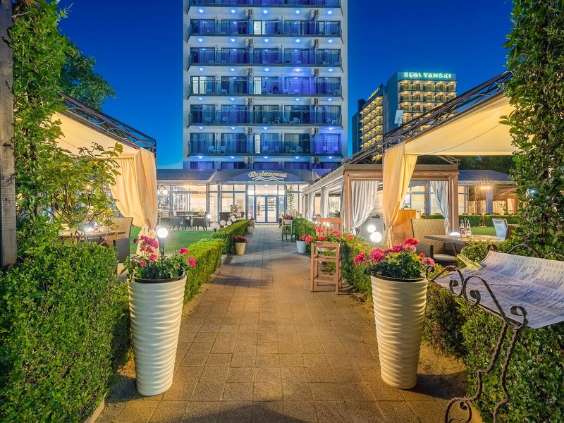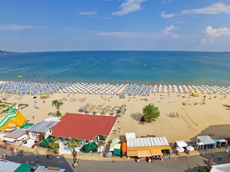 Poloha a okolie Hotel sa nachádza len pár metrov od piesočnatej pláže, na promenáde Slnečného pobrežia. Obchody, bary, reštaurácie a zábava všetkého druhu sú v bezprostrednej blízkosti. Verejná doprava je vzdialená asi 100 m, centrum Slnečného pobrežia asi 15 minút chôdze, staré mesto Nessebar asi 4 km a Burgas s letiskom asi 30 km. Letisko Varna je vzdialené asi 100 km.