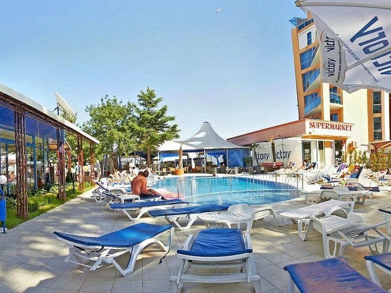 Lage & Umgebung Das Hotel befindet sich nur wenige Meter vom Sandstrand entfernt, an der Promenade von Sonnenstrand. Einkaufsmöglichkeiten, Bars, Restaurants und Unterhaltungen aller Art befinden sich in unmittelbarer Nähe. Öffentliche Verkehrsmittel erreicht man nach etwa 100 m, das Zentrum von Sonnenstrand in ca. 15 Gehminuten, die Altstadt von Nessebar nach rund 4 km und Bourgas mit seinem Flughafen nach etwa 30 km. Der Flughafen von Varna ist ca. 100 km entfernt.