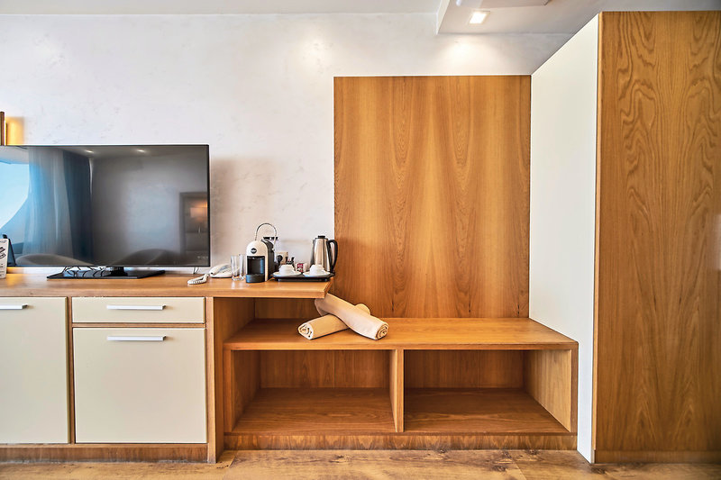 - 26-30 qm, Doppel, Meerblick, kombinierter Wohn-/Schlafraum, 1 Bad, Dusche, WC, Klimaanlage, Minibar, Auffüllung regelmäßig, Softdrinks, Mineralwasser, Bier, Safe, 1 TV (Sat-TV), Wasserkocher, Espressomaschine, Kaffee/Tee, Balkon (möbliert)