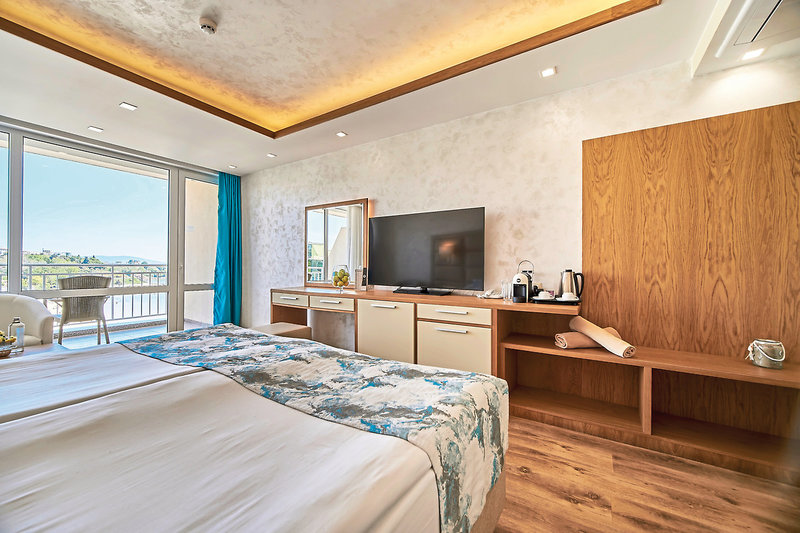 - 26-30 m², dvojlôžková izba, čiastočný výhľad na more, kombinovaná obývacia/spacia časť, 1 kúpeľňa, sprchovací kút, WC, klimatizácia, minibar (pravidelne dopĺňaný), nealkoholické nápoje, minerálna voda, pivo, trezor, 1 TV (satelitná TV), rýchlovarná kanvica, kávovar na espresso, káva/čaj, zariadený balkón
