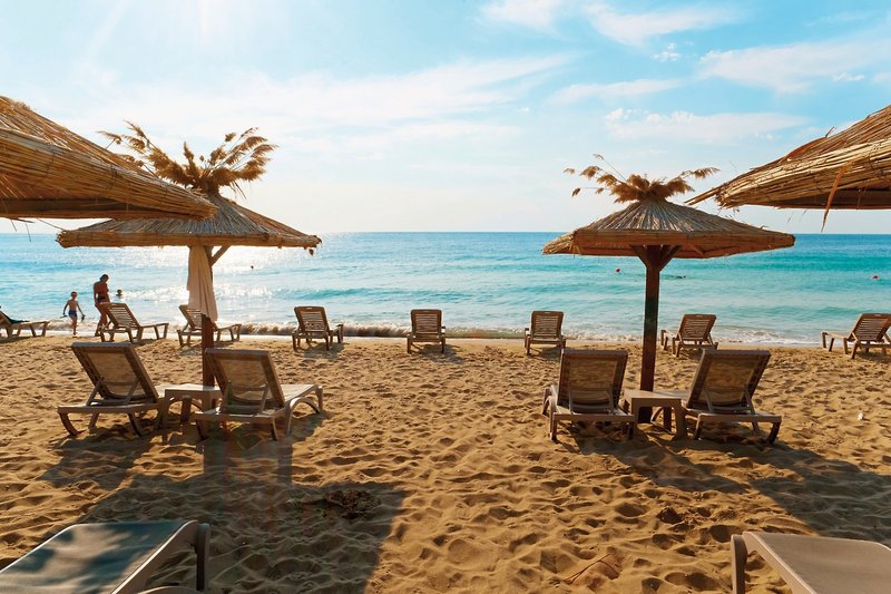 Hoteleigener Strandabschnitt mit inkludierten Liegen und Sonnenschirmen