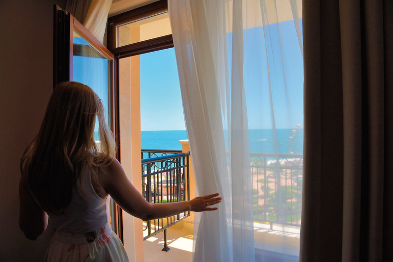 - 31-35 m2, dvojlôžková, superior, výhľad na more, nefajčiarsky, 1 manželská posteľ (king size), 1 rozkladacia pohovka, 1 kúpeľňa, vaňa, sprchovací kút na podlahe, WC, sušič vlasov, kozmetické zrkadlo, koberec, klimatizácia, chodba/predsieň, minibar za poplatok, trezor, TV (nemecký program, miestny program, ploché menu, smart TV), WiFi, výmena posteľnej bielizne, vankúš