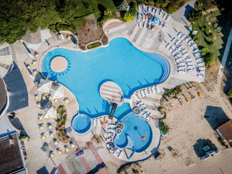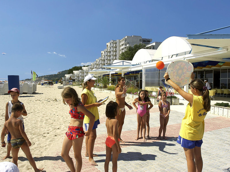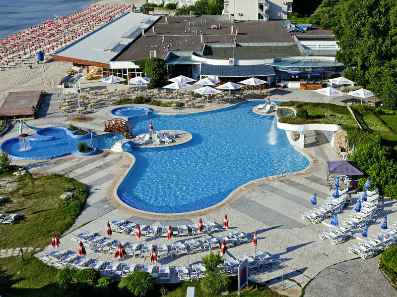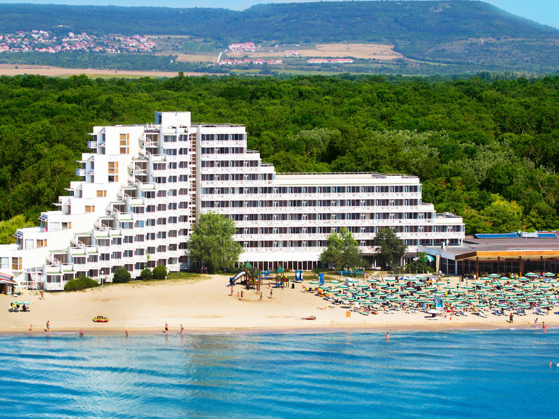 Lage & Umgebung Das Hotel befindet sich direkt am langen, feinsandigen Strand von Albena und hinter dem Naturschutzgebiet "Baltata". Zum Ortszentrum mit zahlreichen Restaurants, Bars, Einkaufs- und Unterhaltungsmöglichkeiten sind es ca. 1,5 km. Transferzeit: ca. 50 bis 80 Minuten.