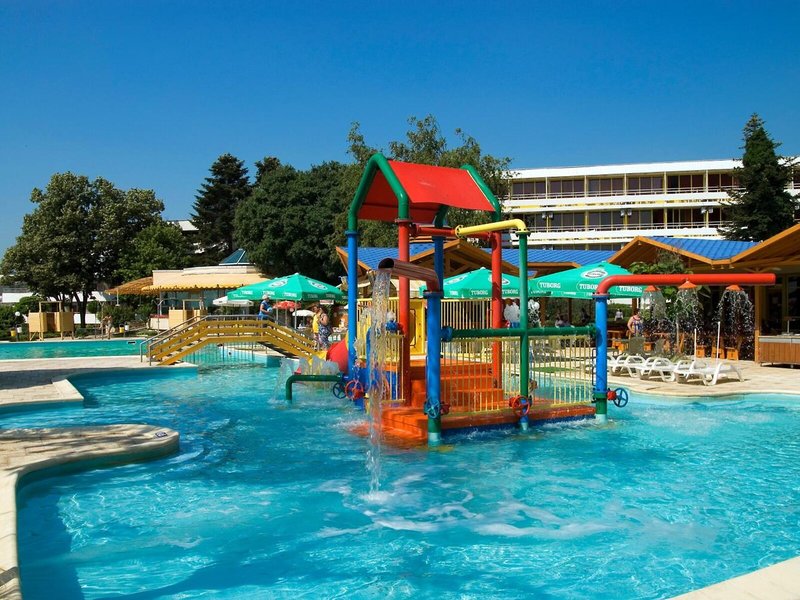 - Bazény: detský bazén, vonkajší bazén, slnečníky pri bazéne, ležadlá pri bazéne, tobogán