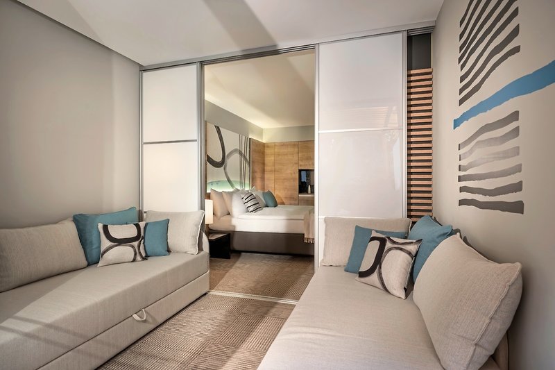 - 26-30 qm, Familien, Bettwäsche, Handtücher und Matratzen aus 100% Bio-Baumwolle, Sofabett, Dusche oder Badewanne, Haartrockner, Klimaanlage, Minibar kostenpflichtig, Safe, TV (Sat-TV), Balkon, Anzahl Zimmer: 1