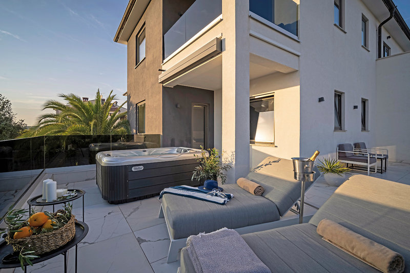 - 36-40 qm, Suite, Meerblick (seitlich), Bettwäsche, Handtücher und Matratzen aus 100% Bio-Baumwolle, Doppelbett, Dusche, Badewanne, WC, Haartrockner, Klimaanlage, Heizung, Minibar kostenpflichtig, Safe, TV (Sat-TV, Flachbildschirm), WLAN, Wasserkocher, Kaffee/Tee, Balkon oder Terrasse (möbliert), Whirlpool