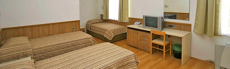 103 Zimmer: einfach eingerichtet, Zentralheizung, Klimaanlage, Telefon, WiFi-Internet (kostenlos), SAT-TV und Dusche/WC. Babybett auf Anfrage gegen Gebühr (ca. 4 € pro Nacht) möglich.