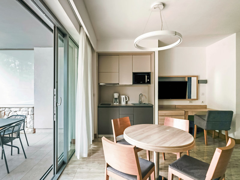 - abweichende Zimmerkategorie: 4 Sterne, 21-25 qm, Studio, Superior, Gartenseite, Bettwäsche, Handtücher und Matratzen aus 100% Bio-Baumwolle, kombinierter Wohn-/Schlafraum, Dusche, Haartrockner, Klimaanlage, Safe, TV, Kochnische, Essecke, Mikrowelle, Kaffeemaschine, Terrasse (möbliert), Bettwäschewechsel (1 x wöchentlich), Handtuchwechsel (1 x wöchentlich), Endreinigung selbst oder zahlbar vor Ort (ca. 50 EUR/Aufenthalt), (ca. 50 CHF/Aufenthalt)