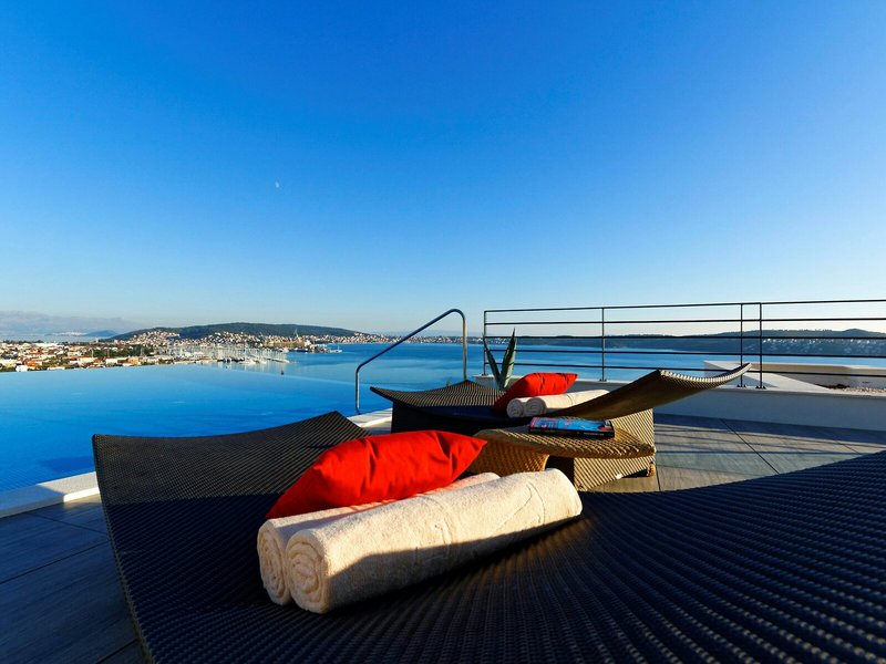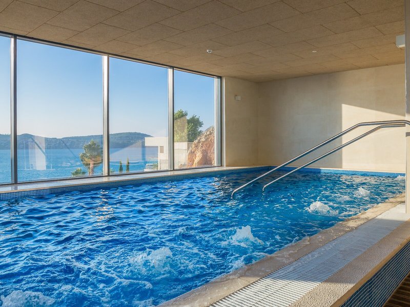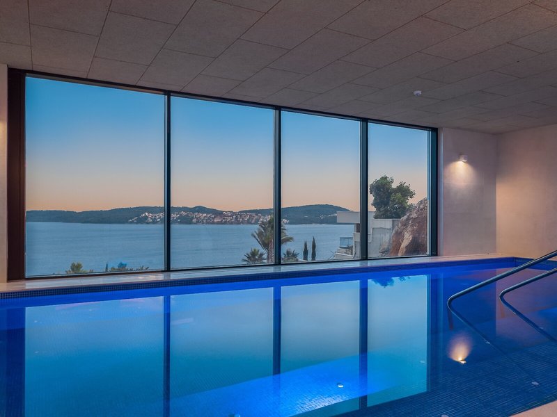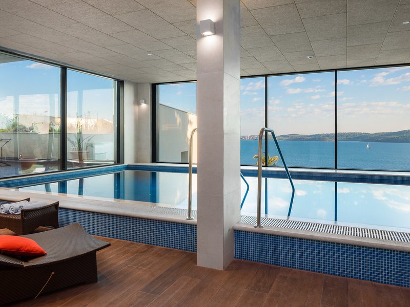 - Bazény: Vnútorný bazén, vonkajší bazén, slnečníky pri bazéne, ležadlá pri bazéne