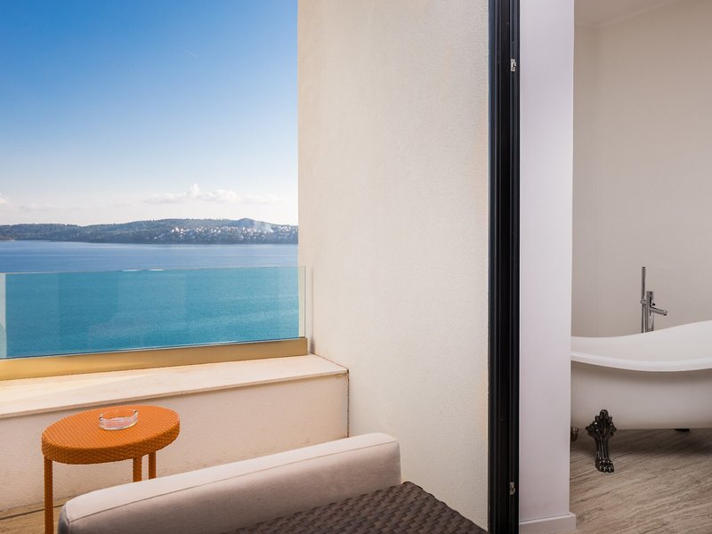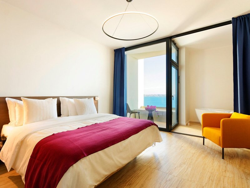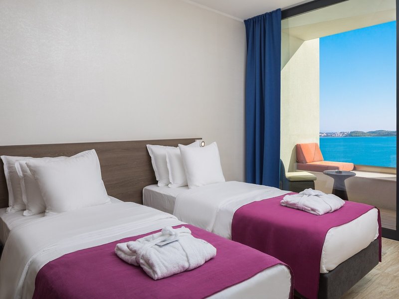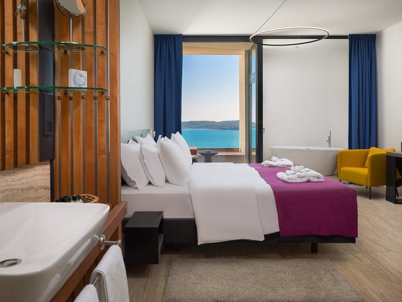 Ubytovanie: Izby sú vybavené klimatizáciou a kúrením. Hostia si môžu vychutnať výhľad na more z balkóna alebo terasy. Izby sú vybavené manželskou posteľou, manželskou posteľou veľkosti queen, posteľou veľkosti king alebo rozkladacou pohovkou. Prístelky je možné požiadať. K dispozícii je aj trezor, minibar a písací stôl. Štandardom je aj zariadenie na prípravu čaju/kávy. Pre pohodlie hostí je k dispozícii žehliaca súprava. K dispozícii je aj telefón, TV s plochou obrazovkou, rádio a Wi-Fi pripojenie na internet (bezplatne). K vybaveniu izieb patria papuče. Kúpeľňa so sprchovacím kútom a vaňou je vybavená sušičom vlasov a županmi. K dispozícii sú aj bezbariérové izby s bezbariérovými kúpeľňami. Hotel ponúka nefajčiarske izby.