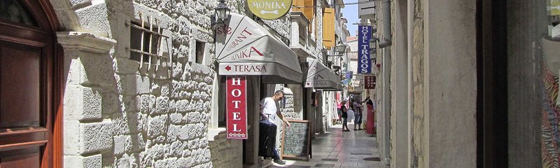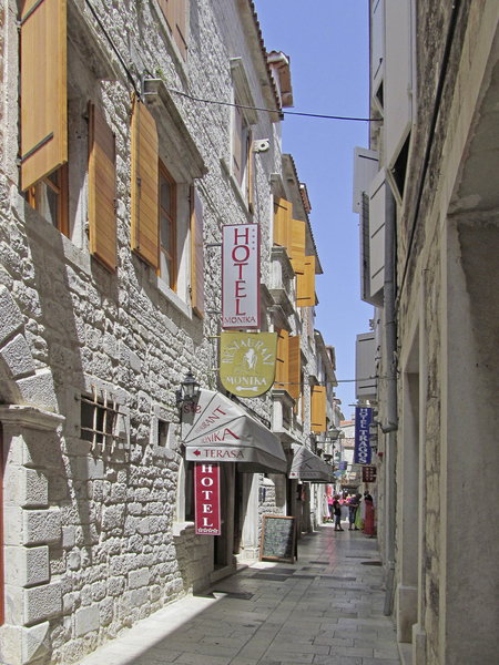Die Altstadt von Trogir gilt als eine der malerischsten Altstädte Dalmatiens. Aufgrund ihrer unzähligen Kulturdenkmäler steht sie nicht nur auf der UNESCO-Liste des Weltkulturerbes, sondern wird häufig auch „Museumsstadt“ genannt. Mitten im Herzen dieser einmaligen Altstadt befindet sich das Hotel in einem Palazzo aus dem 15. Jahrhundert. Im Erdgeschoss des Gebäudes befindet sich das gleichnamige Restaurant mit über 40-jähriger Tradition. Die über dem Restaurant liegenden Etagen wurden unter Aufsicht der Denkmalschutzbehörde aufwändig renoviert. Das Ergebnis kann sich sehen lassen – modernste Technik gepaart mit jahrhundertealten Elementen und Details, die bewusst erhalten wurden. Das Hotel verfügt über insgesamt 13 Zimmer und 3 Suiten. Unsere Empfehlung für einen Kurzaufenthalt in der einmaligen Atmosphäre dieser dalmatinischen Altstadt oder für ein oder zwei Zwischenübernachtungen vor oder nach einer Kreuzfahrt auf einem unserer Motorsegler, die nur 100 m vom Hotel entfernt anlegen.