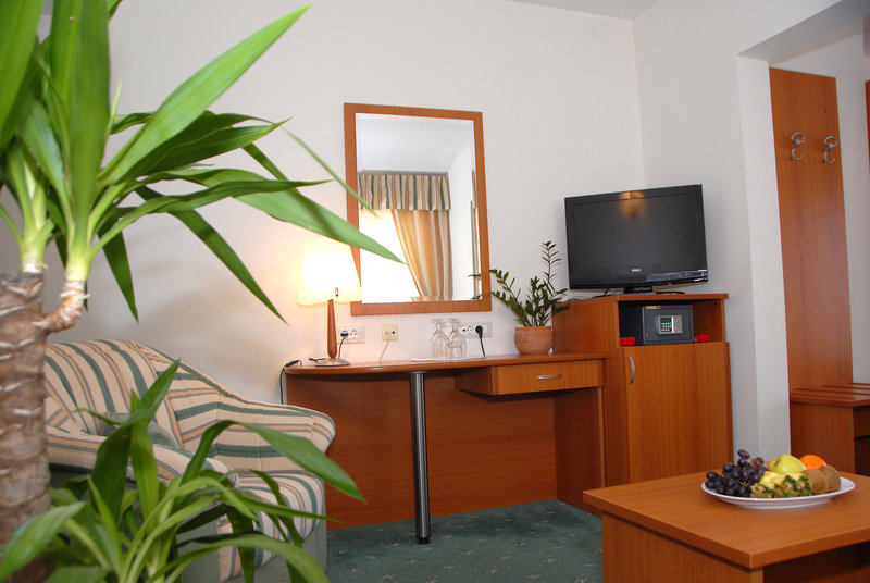 Die Zimmer sind ausgestattet mit Doppelbett, 1 Extrabett (Schlafsofa), Babybett (geg. Gebühr), Teppichboden, Minibar (geg. Gebühr), Balkon, Internet (kostenlos), Safe (kostenlos) und Flatscreen-Sat-TV sowie zentral gesteuerter Klimaanlage und zentral gesteuerter Heizung. Die Bettwäsche wird kostenlos gewechselt.