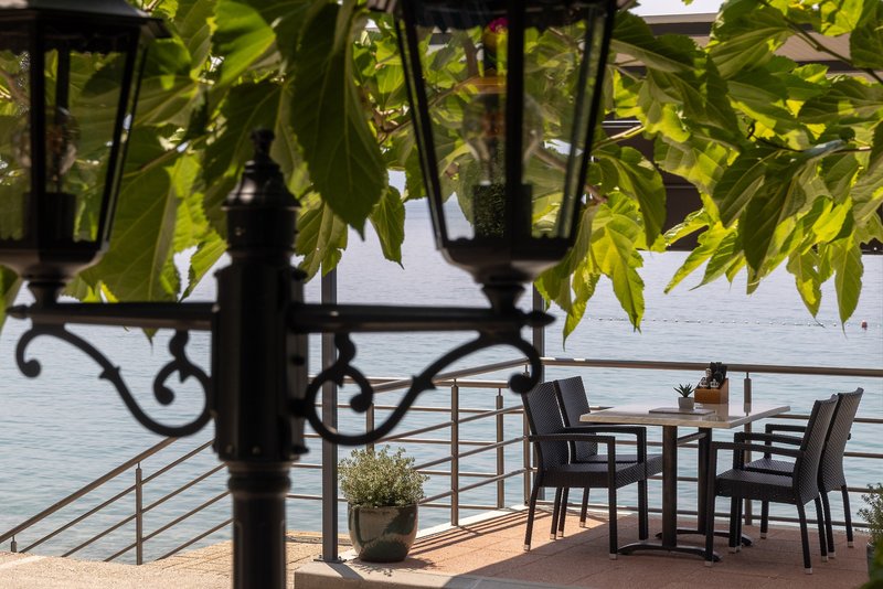 Kamienková pláž je vzdialená len 10 metrov od hotela. Slnečníky a ležadlá sú k dispozícii zadarmo.