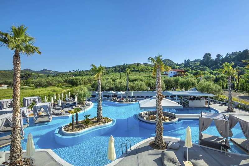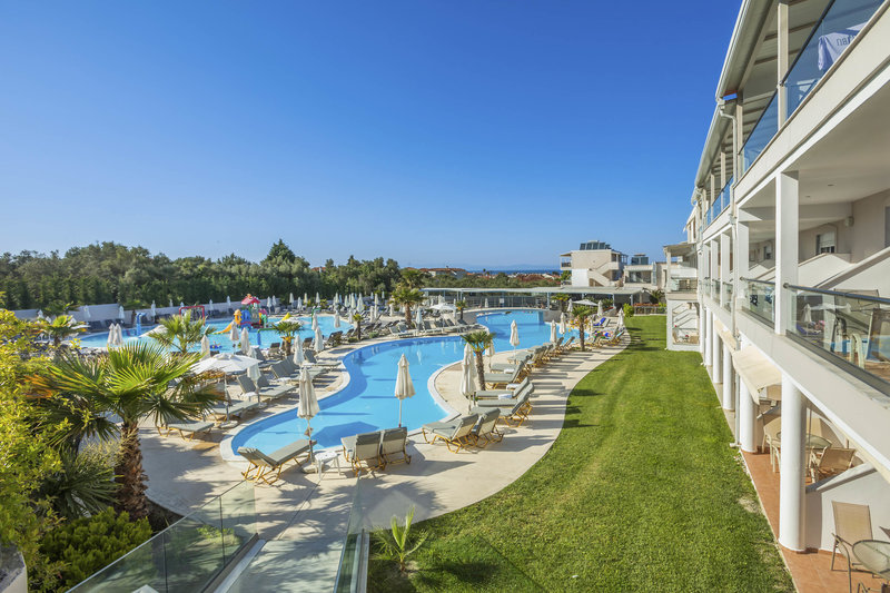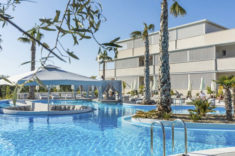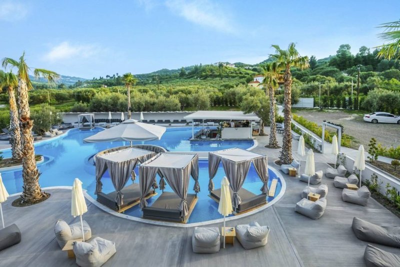 Zum Außenbereich des im mediterranen Stil gestalteten Hotels gehören 3 Pools mit einem separaten Kinderbecken. Hier stehen Sonnenschirme und Sonnenliegen kostenlos zur Verfügung. Erfrischende Getränke können direkt an der Poolbar eingenommen werden.