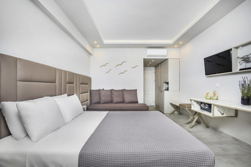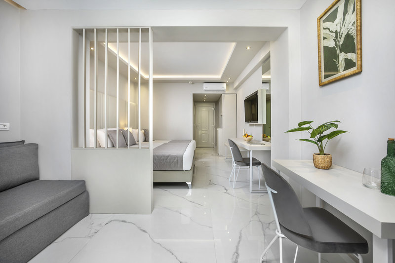 Die Zimmer sind ausgestattet mit gefliestem Boden, Balkon, Internet (kostenlos), Safe (kostenlos) und Sat-TV sowie individuell regulierbarer Klimaanlage und individuell regulierbarer Heizung. Größe: 30 m².