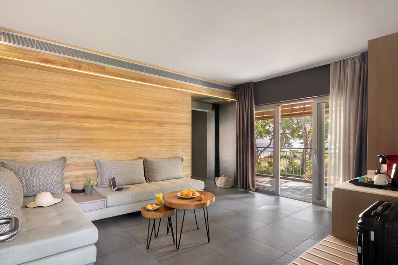 Die Zimmer sind ausgestattet mit Terrasse, Internet (kostenlos), Safe (kostenlos) und Flatscreen-Sat-TV sowie individuell regulierbarer Klimaanlage und individuell regulierbarer Heizung. Größe: 55 m².