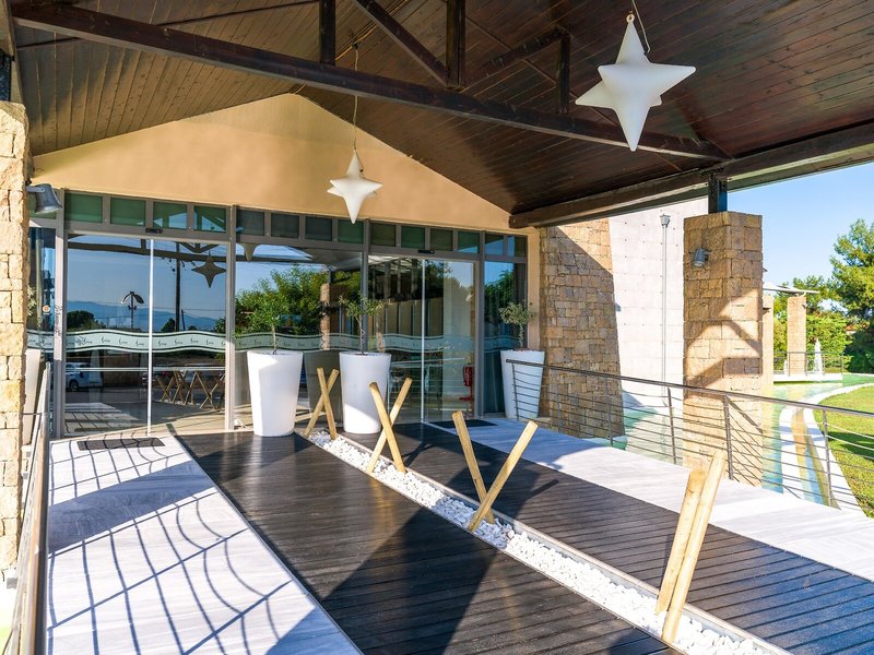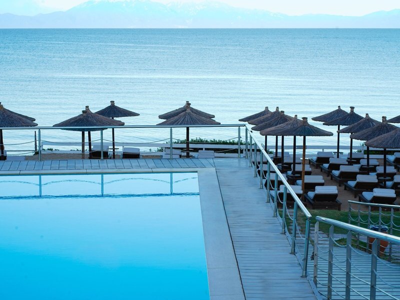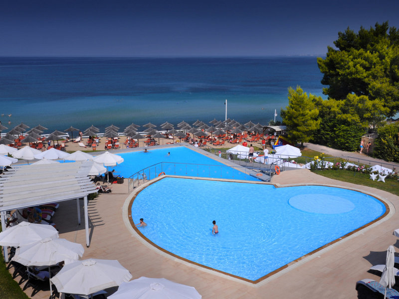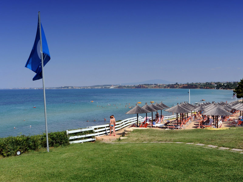 Poloha a okolie Nachádza sa na mierne sa zvažujúcej piesočnatej/kamienkovej pláži. Za jasného dňa môžete vidieť až na horu Olymp na gréckej pevnine. Cesta, ktorá vedie popri hoteli a spája polostrov Kassandra s pevninou, vedie do Nea Potidea (cca 2 km). Nea Moudania s obchodmi atď. je vzdialená asi 5 km.