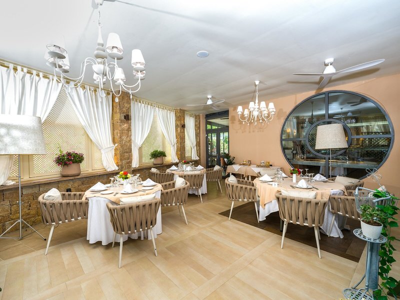 - Reštaurácia: Kuchyňa: medzinárodná, stredomorská; Detská výživa: bezplatne, na požiadanie; Diétna kuchyňa: bezplatne, na požiadanie; Bezlepkové jedlá: bezplatne, na požiadanie; Rezervácia nie je potrebná; Detské menu: bezplatne; Sezónne jedlá: bezplatne; Vegetariánske jedlá: bezplatne; Bufet; Show cooking; Denne 7:15 - 10:30, 12:30 - 14:30 a 18:30 - 21:00; Pri bazéne; Fajčiarska zóna; K dispozícii je detská stolička; Vyžaduje sa elegantný neformálny dress code.