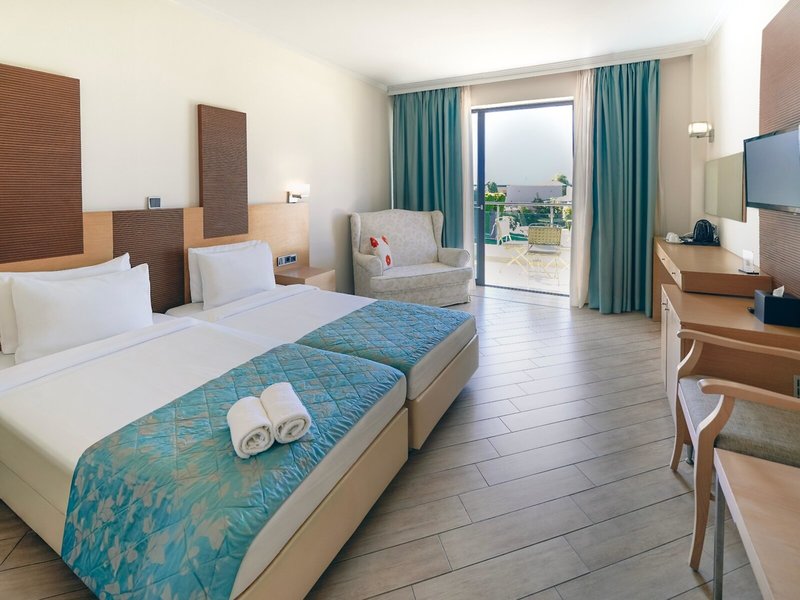 - Double Room (DZX2), Doppelzimmer, Gartenseite, Gartenblick, ca. 23 - 25 m², Gesamtanzahl der Räume in diesem Zimmertyp: 1, Aufteilung wie folgt: kombiniertes Wohn-/Schlafzimmer, 2 Einzelbetten (90x200cm), 1 Schlafsofa (87x193cm), Babybett: ohne Gebühr, Anfrage notwendig, Moskitonetz, Klimaanlage: ohne Gebühr, Mai - Oktober, zentral gesteuert, kalt, warm, Fußboden: Fliesenboden, Safe: ohne Gebühr, Schreibtisch, Kaffee-/Teezubereiter, Minibar: bei All Inclusive inklusive, Minibarauffüllung: mehrmals pro Woche 10:00 Uhr - 15:00 Uhr, Telefon, Internet: WLAN/WiFi: ohne Gebühr, Fernseher: Flatscreen, deutsches Programm, Sat-TV, Roomservice: täglich, gegen Gebühr, Reinigungsservice: täglich 09:00 Uhr - 15:00 Uhr, ohne Gebühr, Badewanne oder Dusche, Bademantel: ohne Gebühr, Slipper: ohne Gebühr, Föhn, Kosmetikspiegel, Terrasse