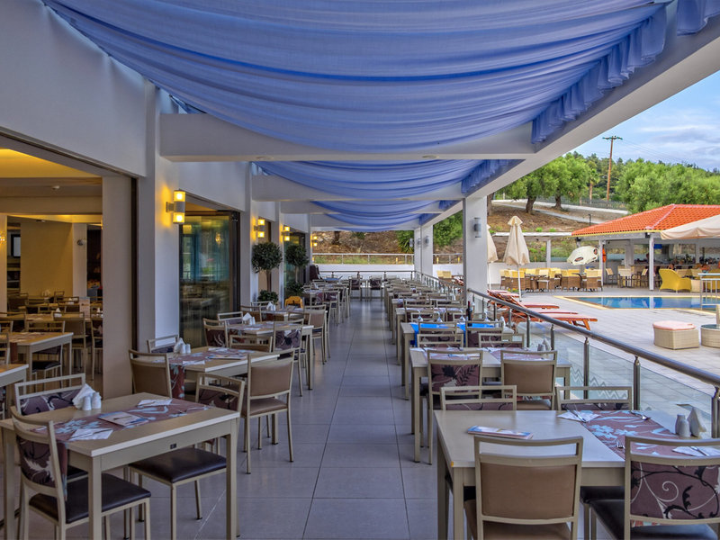 - Hlavná reštaurácia: kuchyňa: grécka, medzinárodná, stredomorská, regionálna, ryby/morské plody, grilované jedlá, bufet, pri bazéne, fajčiarska časť, vysoká stolička