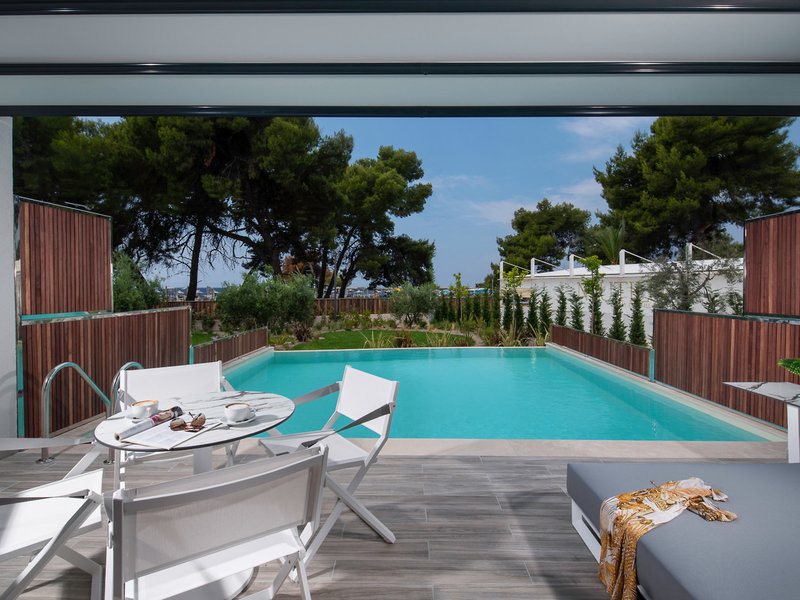 - Suite Meerblick (SUM1), Suite, Nichtraucherzimmer, Neubau, Meerseite, Meerblick, seitlicher Meerblick, ca. 74 m², letzte Komplettrenovierung 2018, Gesamtanzahl der Räume in diesem Zimmertyp: 2, Aufteilung wie folgt: bestehend aus 2 Zimmern, optisch getrennt ohne Tür oder durch Vorhang, 1 King Size Bett (180x200cm), 2 Schlafsofas (160x200cm), Babybett: ohne Gebühr, Moskitonetz, Klimaanlage: ohne Gebühr, April - Oktober, individuell regelbar, kalt, warm, Heizung: April, Mai und Oktober, Fußboden: Fliesenboden, Safe: ohne Gebühr, Sitzecke, Sofa, Schreibtisch, Bügeleisen, Bügelbrett, Kühlschrank: ohne Gebühr, Nespressomaschine, Kaffee-/Teezubereiter, Esstisch, Minibar: gegen Gebühr, Wasser: ohne Gebühr, Telefon, Internet: WLAN/WiFi: ohne Gebühr, Fernseher: Flatscreen, im Wohnbereich, im Badezimmer, im Schlafzimmer, deutsches Programm, Sat-TV, Radio, Roomservice: täglich 09:00 Uhr - 22:00 Uhr, gegen Gebühr, Reinigungsservice: täglich, ohne Gebühr, Dusche, separate Dusche, Regendusche, WC, separates WC, Bademantel: ohne Gebühr, Slipper: ohne Gebühr, 2 Bäder, Föhn, Kosmetikspiegel, Terrasse: mit Liegestühlen, mit Liegen, mit Sitzgelegenheit, mit Dusche, mit Private Pool