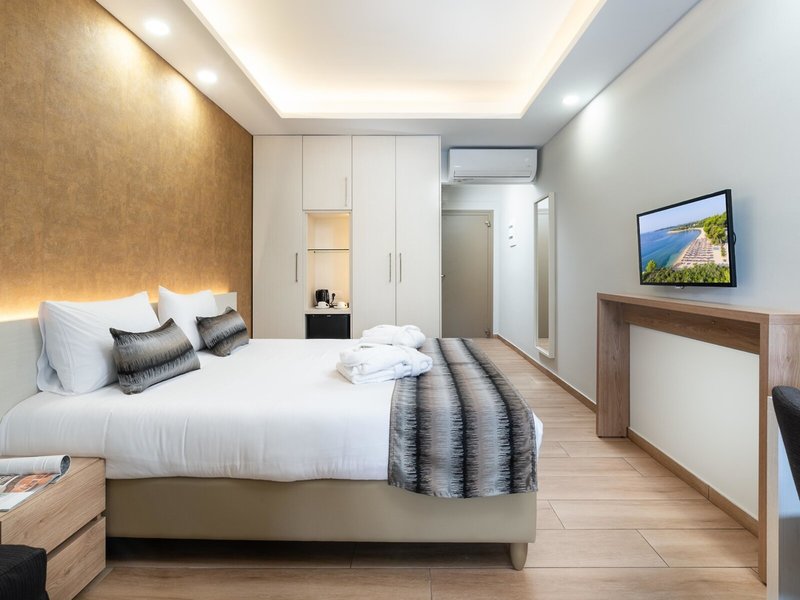 zus. Informationen: Touristensteuer Griechenland erhebt nach aktuellem Stand eine Klimasteuer (die sogenannte "Abgabe für Klimaresilienz") pro Zimmer pro Nacht, zahlbar vor Ort im Hotel, Unterkunft:
