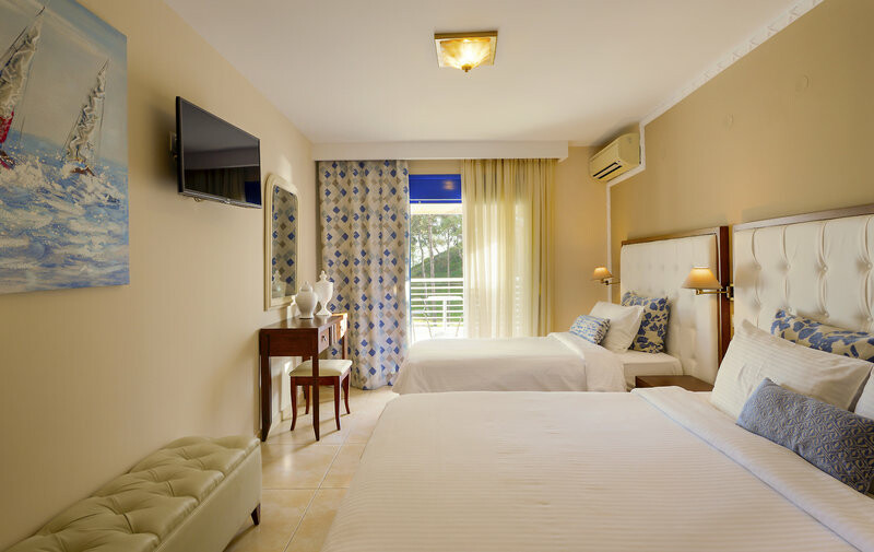 Dvojlôžková izba (cca 20 m2): s vaňou alebo sprchou/WC, sušičom vlasov, županom, papučami, satelitnou TV, klimatizáciou (individuálne nastaviteľná, zdarma), WiFi (zdarma), trezorom, telefónom a minibarom ( prípadne za poplatok) a balkón alebo terasa. Za príplatok je možné rezervovať si výhľad na more.