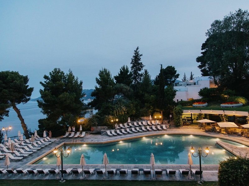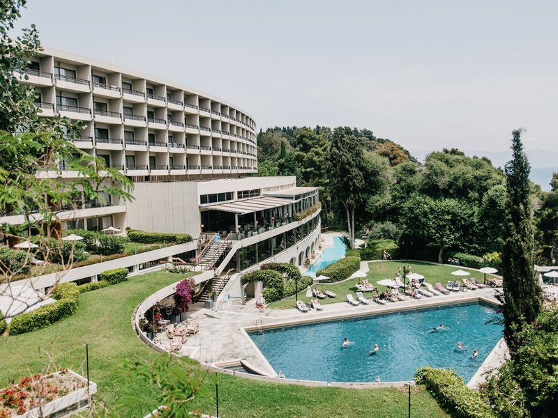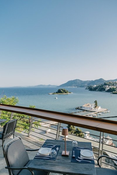 Poloha a okolie Hotel sa nachádza v meste Kanoni, v krásnej rezidenčnej štvrti na okraji mesta Korfu, s úchvatným panoramatickým výhľadom a malou pieskovo/kamienkovou plážou priamo pod hotelom (prístup po schodoch). Od centra je to len cca 10 minút (cca 4 km). V okolí komplexu sa nachádzajú obchodné zóny s obchodmi, butikmi, barmi, reštauráciami.