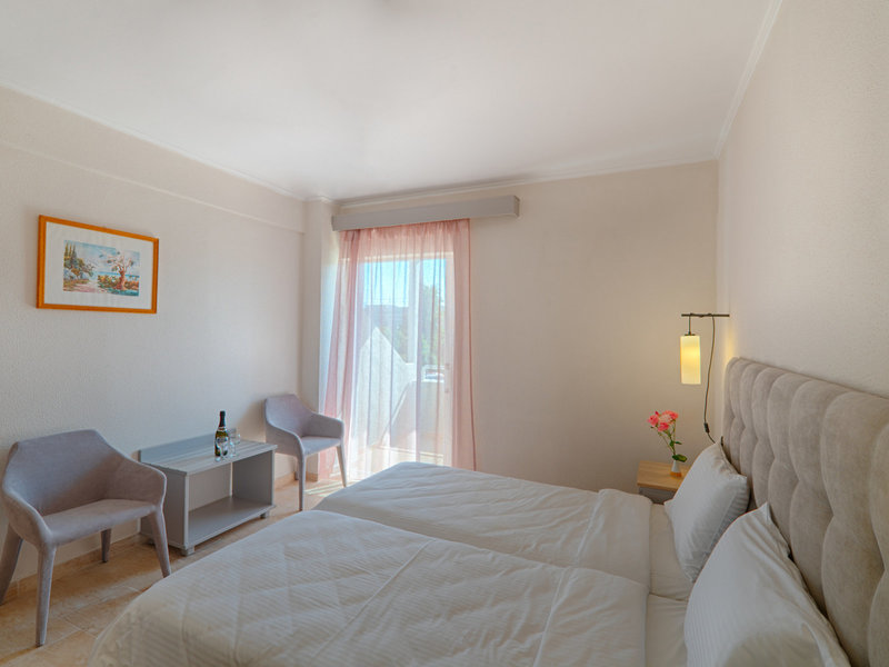 - Doppelzimmer Best Price Typ1 (DZZ1), Doppelzimmer, Landblick, ca. 18 m², letzte Komplettrenovierung 2019, Klimaanlage: individuell regelbar, zentral gesteuert, kalt, warm, Fußboden: Fliesenboden, Laminat, Telefon, Internet: WLAN/WiFi, Fernseher: Flatscreen, im Schlafzimmer, deutsches Programm, Reinigungsservice: mehrmals pro Woche 09:00 Uhr - 15:00 Uhr, ohne Gebühr, WC, Föhn, Balkon oder Terrasse: mit Sitzgelegenheit