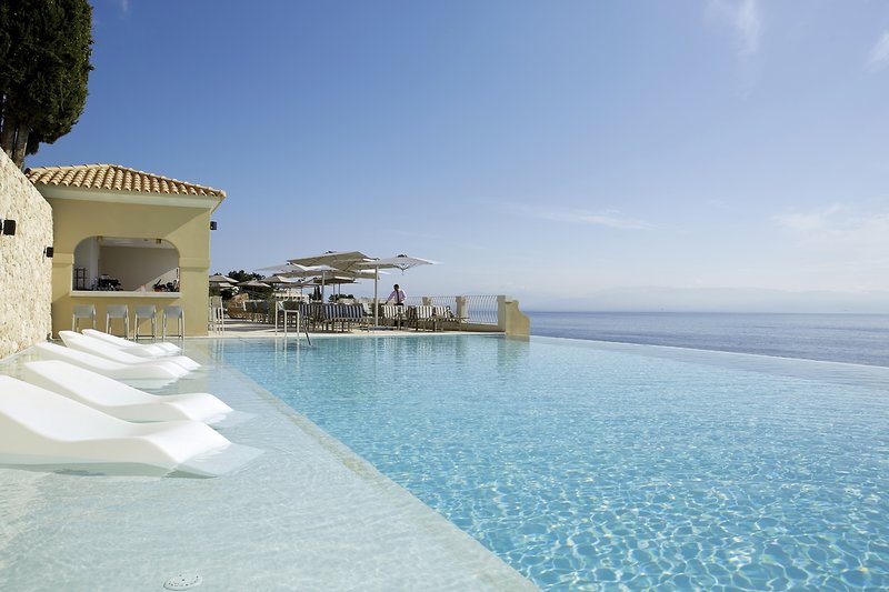 Luxusný hotel len pre dospelých! Vynikajúce suity sú vaším dovolenkovým domom – v prípade potreby so súkromným bazénom. Okná od podlahy až po strop poskytujú jasný výhľad na Iónske more. Na pláži a pri bazéne sú vám k dispozícii ležadlá, plážové osušky a slnečníky.Vaše výhody: