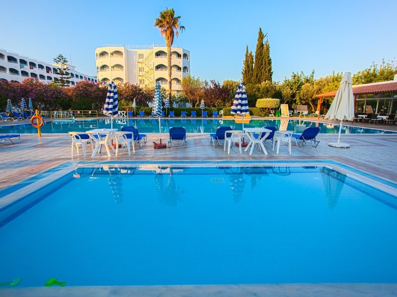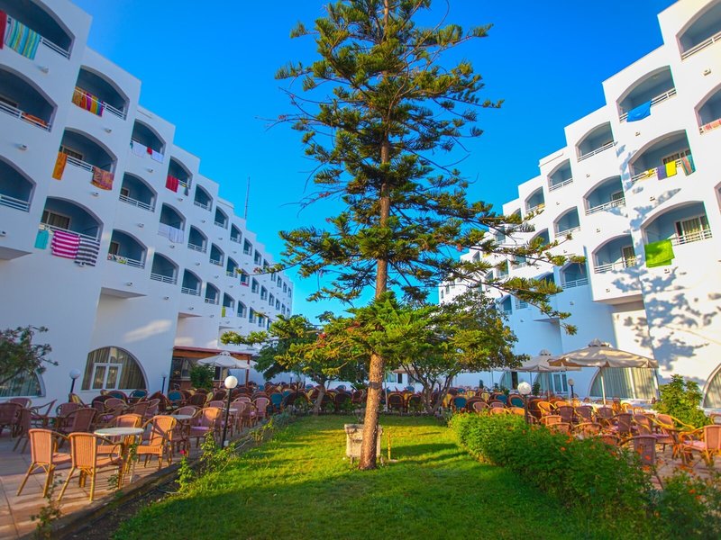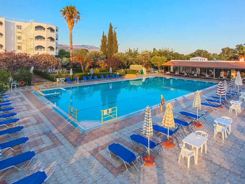 Das erwartet Sie: Eines der bekanntesten Hotels der gehobenen Mittelklasse am Stadtrand von Kos, nur wenige Gehminuten vom Hafen und dem lebhaften Zentrum entfernt. Zwei miteinander verbundene Gebäude, umgeben von einem gepflegten Garten mit schattenspendenden Bäumen, laden zum Verweilen ein.