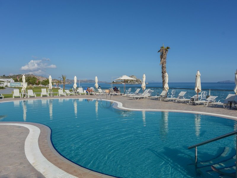 Lage & Umgebung Das Hotel liegt, nur durch die Promenade getrennt, am Strand. Der Flughafen Kos kann nach ca. 14 km erreicht werden.