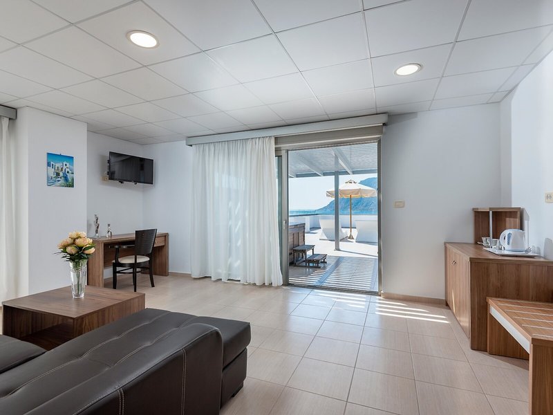 - Junior Suite Seaview (JSM1), Juniorsuite, im Nebengebäude, Meerseite, Meerblick, ca. 25 - 35 m², Gesamtanzahl der Räume in diesem Zimmertyp: 1, Aufteilung wie folgt: kombiniertes Wohn-/Schlafzimmer, 2 Einzelbetten (90x200cm), 1 Schlafsofa (100x190cm), Babybett: ohne Gebühr, Anfrage & Reservierung notwendig, Klimaanlage: ohne Gebühr, Mai - Oktober, individuell regelbar, kalt, Fußboden: Fliesenboden, Safe: ohne Gebühr, Sofa, Schreibtisch, Kühlschrank: ohne Gebühr, Kaffee-/Teezubereiter, Telefon, Internet: WLAN/WiFi: ohne Gebühr, Fernseher: Flatscreen, im Schlafzimmer, Sat-TV, Reinigungsservice: täglich, ohne Gebühr, Dusche, WC, Föhn, Kosmetikspiegel, Terrasse: mit Sitzgelegenheit