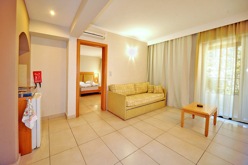 Studios: Verfügen über einen kombinierten Wohn-/Schlafraum und Kitchenette bei ansonsten gleicher Ausstattung wie die Doppelzimmer.