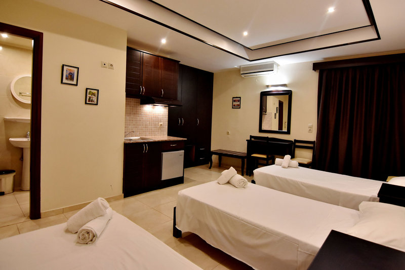 Die Zimmer sind ausgestattet mit Einzelbett, Babybett (kostenlos), gefliestem Boden, Kitchenette, Kühlschrank, Kapsel‑Kaffeemaschine (geg. Gebühr), Wasserkocher (kostenlos), Balkon, Internet (kostenlos), Safe (geg. Gebühr) und Flatscreen-TV sowie individuell regulierbarer Klimaanlage (von April bis Oktober, geg. Gebühr) und individuell regulierbarer Heizung (von April bis Oktober, geg. Gebühr). Badezimmer mit Dusche (Größe: 24 m²). Handtücher werden 3x pro Woche kostenlos gewechselt.