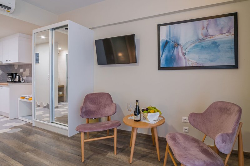 miesto:Hotel Bio Suites & Spa, obľúbený najmä u novomanželov na svadobnej ceste, sa nachádza približne 200 metrov od piesočnatej pláže. Lehátka a slnečníky sú na pláži k dispozícii zadarmo. Mesto Chania je vzdialené približne 64 km (Episkopi približne 14 km, Heraklion približne 79 km). Nákupné možnosti sú od hotela vzdialené približne 600 metrov a supermarket približne 70 metrov. Najbližšie bary a reštaurácie sú vzdialené približne 700 metrov. Najbližší nočný klub je tiež vzdialený približne 600 metrov. Ďalšie možnosti zábavy, ako napríklad kino a divadlo, sa nachádzajú približne 100 metrov, respektíve 1 km. Z hotela sú ľahko dostupné tieto atrakcie: Staré Mesto (cca 700 m), Verejný park (cca 700 m), Paleontologické múzeum (cca 950 m), Hrad Fortezza a Benátsky prístav. Na prepravu počas vašej dovolenky je okrem požičovne áut k dispozícii aj požičovňa motocyklov, stanovište taxíkov (cca 200 m) a autobusová zastávka (cca 290 m). Letisko (CHQ) je vzdialené približne 67 km. Ďalšie letisko (HER) je vzdialené približne 80 km.