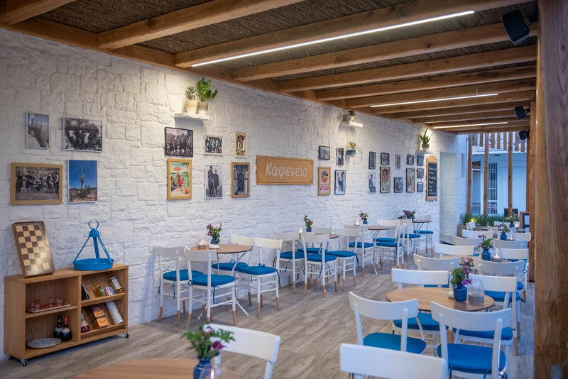 - Moderný plážový bar s výhľadom na trblietavé more