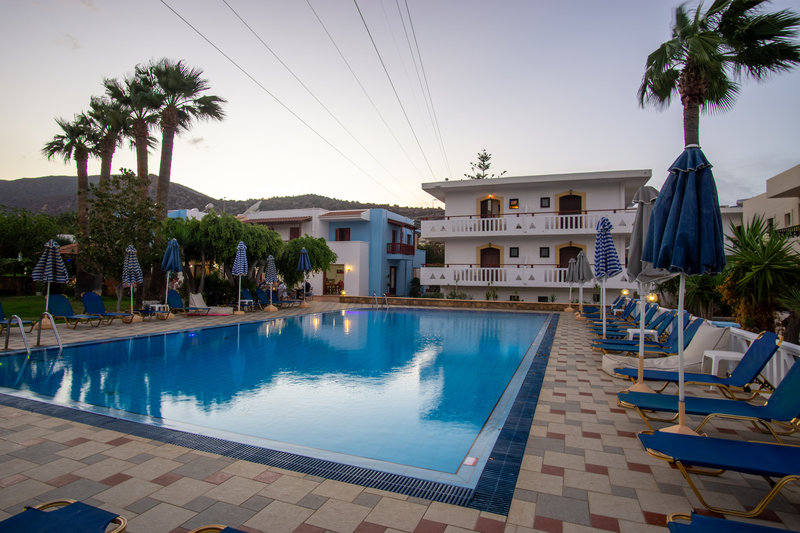 Das Hotel Paloma Garden and Corina Hotel befindet sich ca. 350 m vom Sandstrand entfernt. Am Strand sind Sonnenliegen und Sonnenschirme gegen Gebühr verfügbar. Zum touristischen Zentrum sind es ca. 350 m. Die Stadt Hersonissos ist ca. 2 km entfernt (Heraklion ca. 30 km, Mallia ca. 2 km). Ein Supermarkt ist nach ca. 50 m zu erreichen. Die nächstgelegenen Bars und Restaurants erreichen Sie ebenfalls nach rund 50 m. Zur nächsten Diskothek gelangt man nach rund 500 m. Für Mobilität im Urlaub sorgen neben einem Mietwagen-Verleih auch ein Motorrad-Verleih, ein Taxistand (ca. 350 m) und eine Bushaltestelle (ca. 150 m entfernt). Zur ärztlichen Versorgung im Notfall befindet sich ein Krankenhaus in etwa 30 km Entfernung. Der Flughafen (CHQ) ist ca. 177 km entfernt. Ein weiterer Flughafen (HER) liegt in etwa 28 km Entfernung.