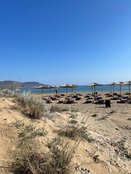 - Pláž Kavros: piesková, verejná, ležadlá: za poplatok, slnečníky: za poplatok