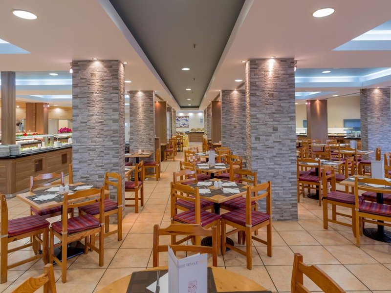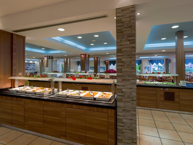 - Hlavná reštaurácia Minos: Kuchyňa: grécka, medzinárodná, typická pre krajinu, stredomorská, regionálna, detské menu, sezónne jedlá, vegetariánske jedlá, bufet, požiadavka a rezervácia nie je nutná, bez poplatku, v cene all inclusive, máj - október, 7:00 hod. - 11:00, 12:30 - 14:30 a 19:00 - 21:30, klimatizované, s terasou, detskou stoličkou, vhodné oblečenie