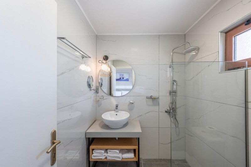 Klimatizácia a kúrenie zabezpečujú príjemnú vnútornú klímu v izbách. Hostia môžu relaxovať a vychutnávať si výhľad na more na balkóne alebo súkromnej terase väčšiny izieb. Izby majú manželskú posteľ alebo rozkladaciu pohovku. Prístelky je možné vyžiadať. K dispozícii je aj trezor a minibar. K dispozícii je plne vybavená kuchynka s chladničkou, minichladničkou, mikrovlnnou rúrou a príslušenstvom na prípravu čaju/kávy. Pre väčšie pohodlie hostí je k dispozícii súprava na žehlenie. Okrem toho je k dispozícii telefón, satelitná TV a WiFi (zdarma). V kúpeľni so sprchovacím kútom a vaňou nájdete sušič vlasov. Kozmetické výrobky poskytujú extra pohodlie v kúpeľniach. Dom ponúka rodinné a nefajčiarske izby.