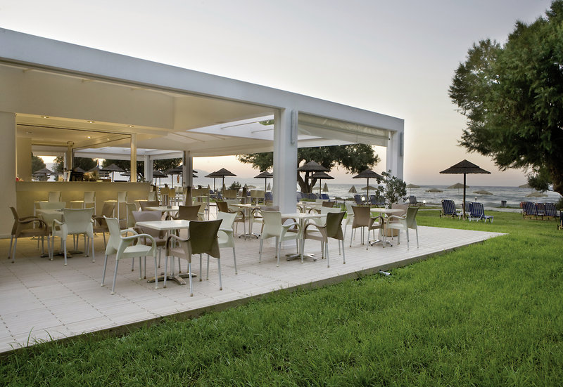 Kvitnúce záhrady pri modrom mori. Tu sa rodinný hotel nachádza priamo na krásnej piesočnatej pláži Platanias, ktorá bola ocenená Modrou vlajkou za čistotu a bezpečnosť.miesto: