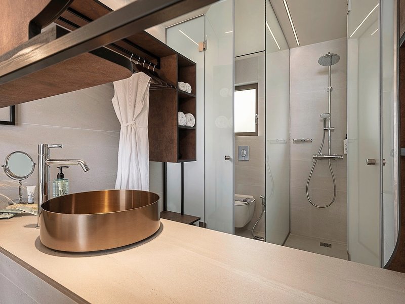 - 31-35 m2, rodiny, so spojovacími dverami, výhľad na more (bočný), 1 samostatná spálňa, 1 kúpeľňa, sprcha alebo vaňa, WC, sušič vlasov, klimatizácia, individuálne nastaviteľný, trezor (za poplatok), 1 TV (satelitná TV), rýchlovarná kanvica, mikrovlnná rúra, kávovar, káva/čaj, chladnička, balkón (zariadený)