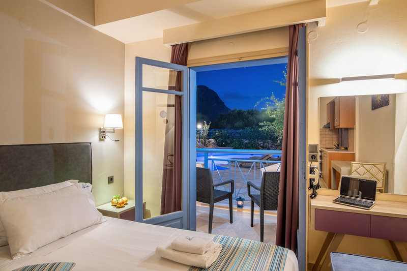 Mit Twinbett oder Einzelbett, Babybett (kostenlos), Kitchenette, Wasserkocher (kostenlos), Balkon oder Terrasse, Internet (kostenlos) und Safe (geg. Gebühr) sowie individuell regulierbarer Klimaanlage (geg. Gebühr). Handtücher werden 2x pro Woche gewechselt. Größe: 35 m².