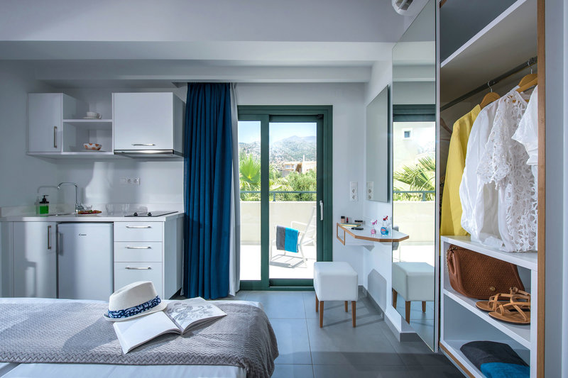 S manželskou posteľou alebo dvoma samostatnými lôžkami, detskou postieľkou (zdarma), kuchynským kútom, rýchlovarnou kanvicou (zdarma), balkónom alebo terasou, internetom (zdarma), trezorom (za poplatok) a satelitnou TV, ako aj individuálne nastaviteľnou klimatizáciou (za poplatok). Kúpeľňa so sprchovacím kútom (veľkosť: 20 m²).