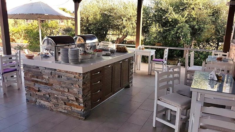 Každá izba je jednoducho zariadená a má klimatizáciu, satelitnú TV, chladničku, kúpeľňu so sprchovacím kútom a sušičom vlasov. K dispozícii je aj balkón s výhľadom do záhrady alebo na more.