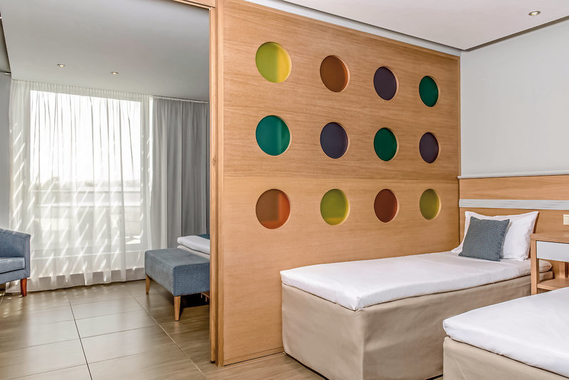 - 31-35 qm, Familien, Gartenblick, 2 separate Schlafzimmer, 3 Einzelbetten, Doppelbett, 2 Bäder, Dusche, Regendusche, WC, Haartrockner, Klimaanlage, individuell regulierbar, Safe, 1 TV (Sat-TV), Mikrowelle, Kaffee/Tee, Kühlschrank, Terrasse (möbliert)