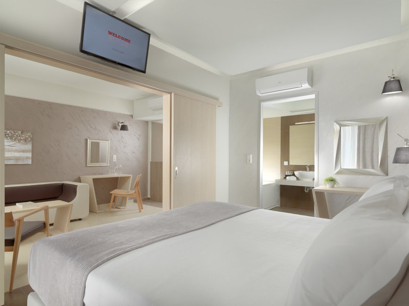 - Junior suita (JSX1), junior suita, v hlavnej budove, cca 34 m², celkový počet izieb v tomto type izby: 1, rozloženie takto: kombinovaná obývacia izba/spálňa, 2 samostatné postele, 1 rozkladacia pohovka, klimatizácia: zadarmo, individuálne nastaviteľný, trezor: zadarmo, pohovka, písací stôl, chladnička, espresso kávovar, kávovar/čajník, rýchlovarná kanvica, telefón, Internet: WLAN/WiFi: zadarmo, TV: plochá obrazovka, nemecké programy, satelit TV, vaňa alebo sprcha, samostatné WC, župan, papuče, fén, balkón: s posedením