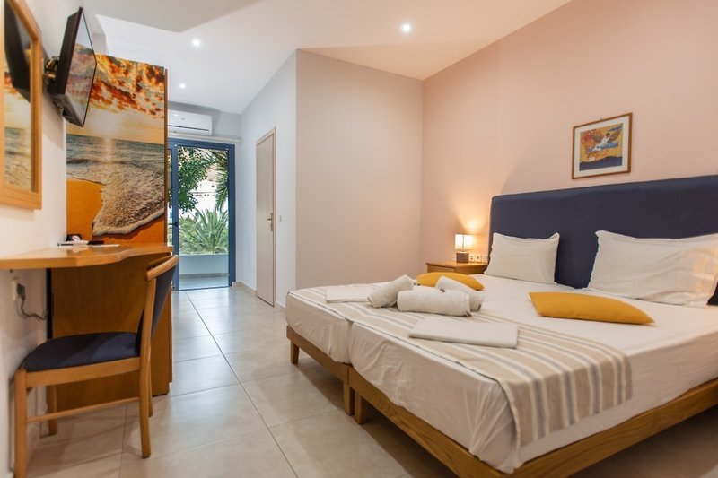 Das 4-geschossige 2. Reihe-Strandhotel verfügt über 31 Zimmer, die sich auf ein Hauptgebäude und ein Nebengebäude verteilen. Es bietet seinen Gästen eine Rezeption (Check In ab 12:30 Uhr, Check out bis 11:00 Uhr), eine Lobby, einen Lift, eine Klimaanlage, einen Safe (gegen Gebühr) sowie einen Parkplatz (kostenlos). WLAN steht den Hotelgästen kostenlos zur Verfügung. Die Zimmerreinigung ist kostenlos.